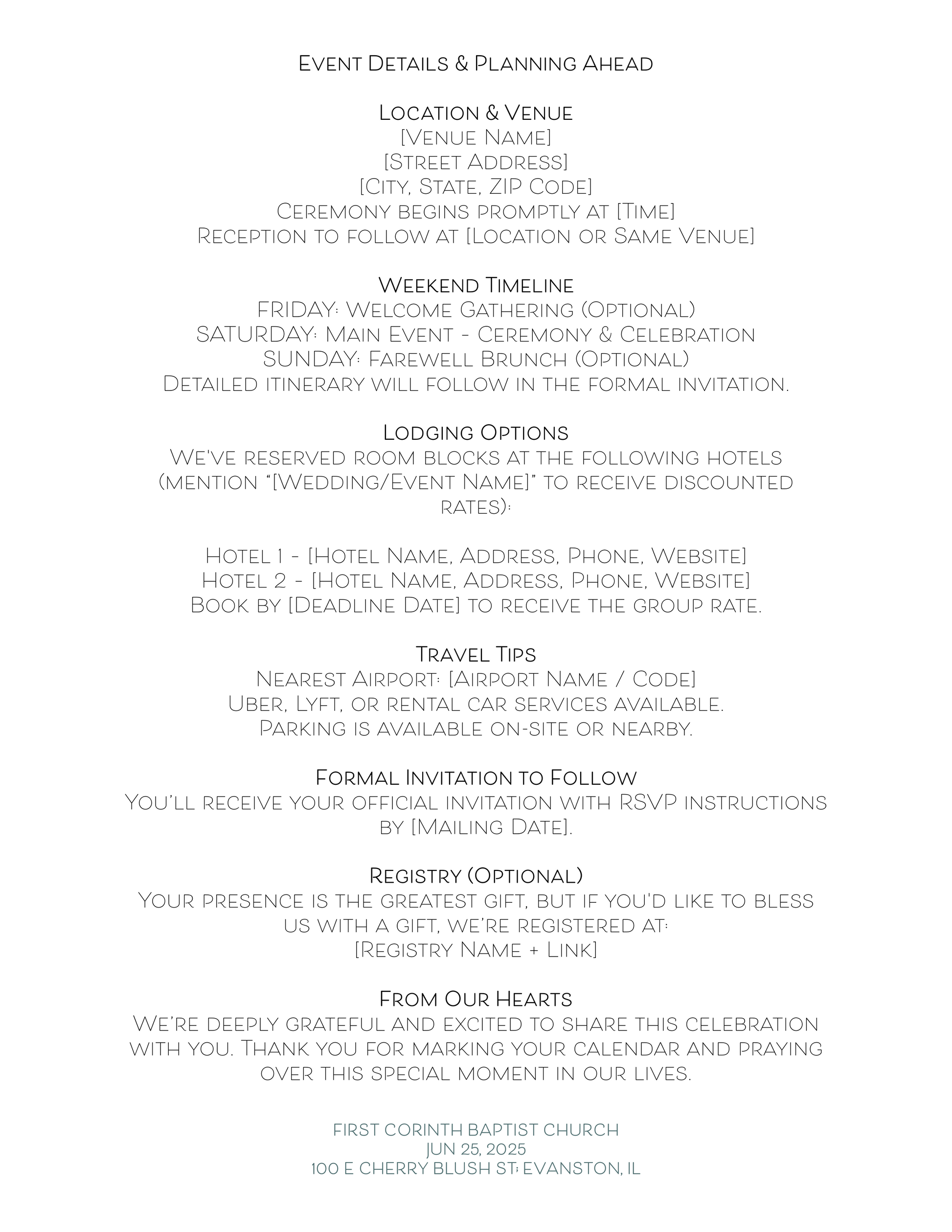 Customizable Save-the-Date + Wedding Weekend Letter Template (Editable PDF & Google Doc)